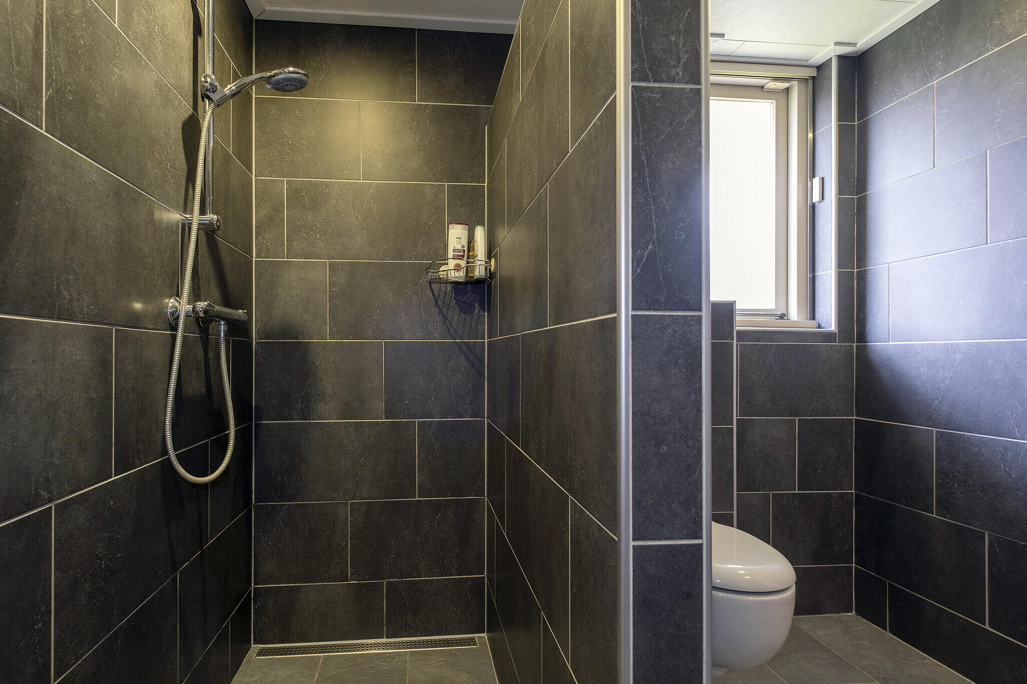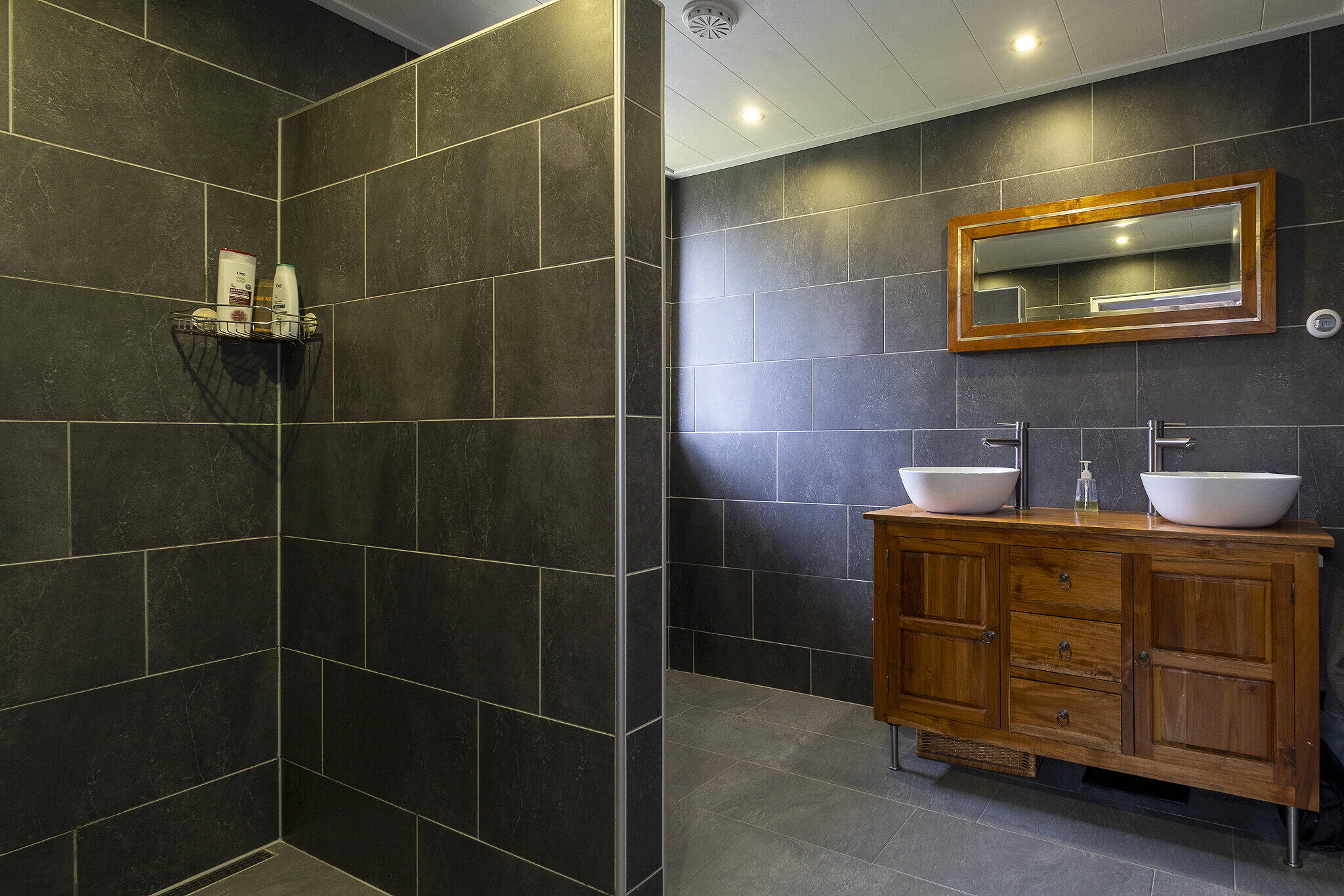 - Toilet, douche, dubbele wastafel, wastafelmeubel, inloopdouche